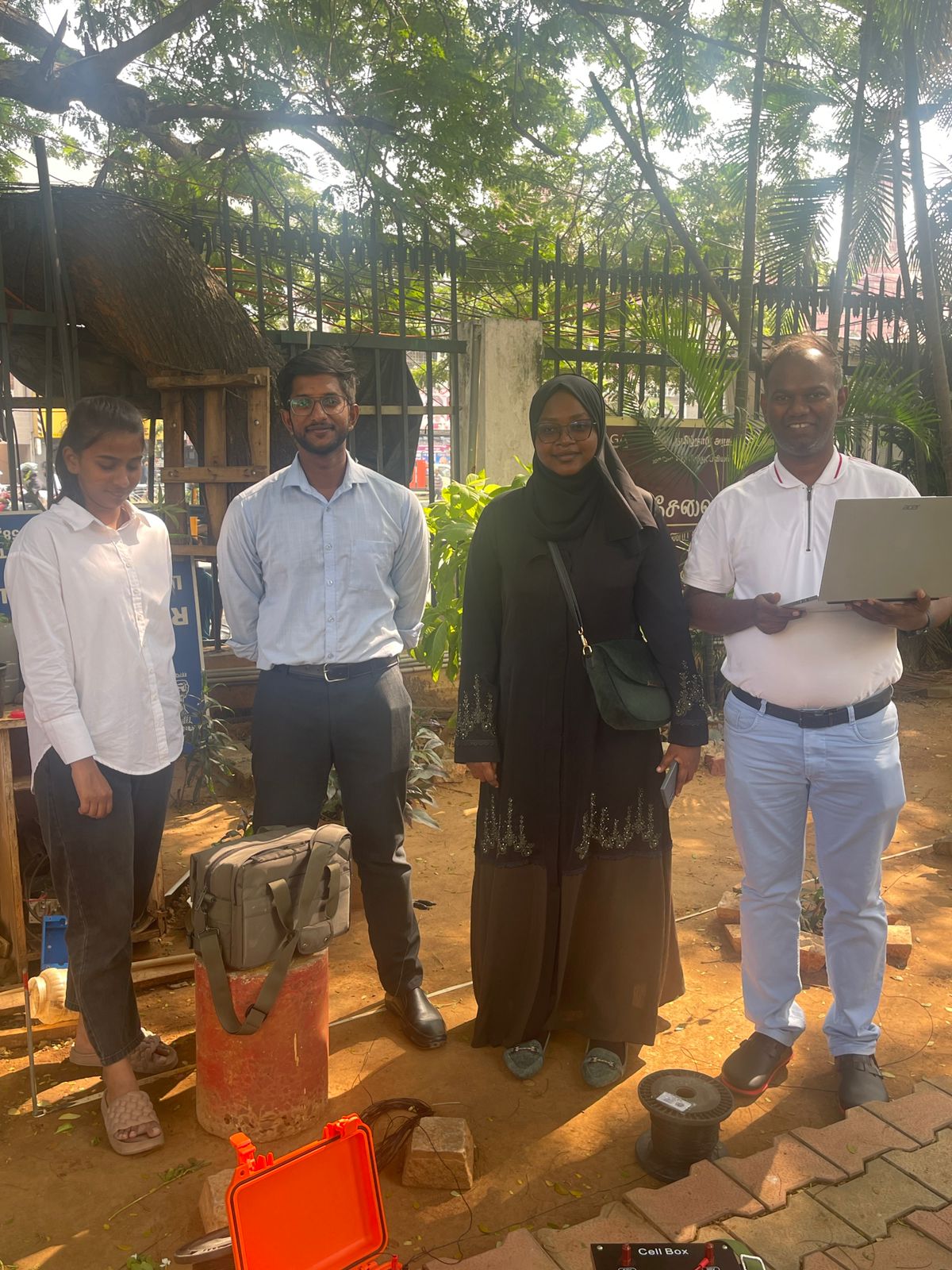Electrode. An instrument used to make resistivity surveys which usually has a current transmitter and voltage-measuring circuitry. A conductor is planted into the ground through which current is passed or used to measure the voltage caused by the wind.The resistivity survey method is a 100 years old technique and is one of the most commonly used geophysical exploration techniques. It is used to image targets from the millimeter scale to structures with dimensions of kilometers. It is widely used in environmental, engineering, and mineral exploration surveys where soil resistivity meter is used. There have been many recent advancements in instrumentation and data interpretation, resulting in more efficient surveys and accurate earth models. In its most simple form, the resistivity meter injects a current into the ground through two metal stakes (electrodes) and measures the resulting voltage difference on the ground surface between two other points.