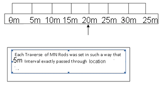 Readings were carried out at 5m interval starting from Station 0 to Station 40m. In site the second station 20m was chosen to exactly pass through the investigation location. The station details are shown in Fig. 4