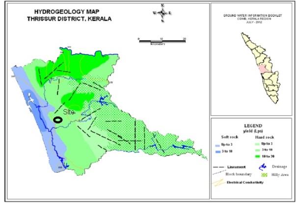 Thrissur district is principally made up of hard rocks and sedimentary formations. Hardrock is made of greanites and gneisses. The geology of Thrissur District is such that it can be divided into two parts; the western coastal region comprising of loose unconsolidated sediments that have been deposited on the shore by rivers and ocean currents and the eastern region, which is underlain by hard, crystalline basement rocks such as gneiss and charnockite. Except for a thin coastal strip of 10-15 km, the major area of Thrissur district is composed of ancient crystalline rocks. The charnockites and gneisses have a characteristic ‘foliated structure’ imparted by the dark coloured tabular and flaky minerals. Cutting across these older rocks are linear bodies called dykes, which are doleritic and gabbroic in nature. The hard rocks terrains such as granites are usually devoid of primary porosity. Secondary porosity was developed due to weathering and fracturing of the hard rock and forms a good aquifer zone for groundwater occurrence and movement. In Annalur the geology consists of granite and gneissic rock.
